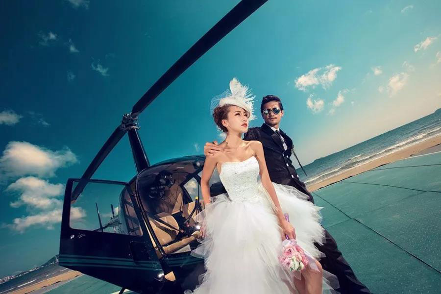 婚禮,新人翱翔天際,不僅浪漫,仿佛得到上天的祝福。